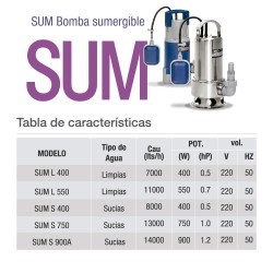 BOMBA SUMERGBLE A.LIMPIA PLAS 400W PLUVIUS